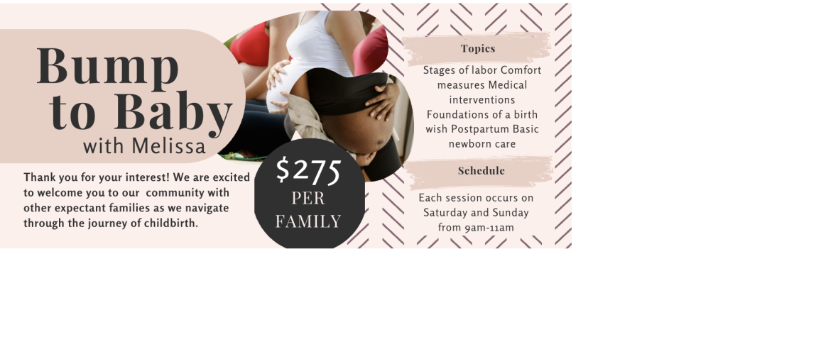 After selecting your date and completing this form, you will receive a confirmation text and an email with additional details for payment and registration. These are required within 48 hours of submitting this page to secure your spot in the prenatal class. Thank you!